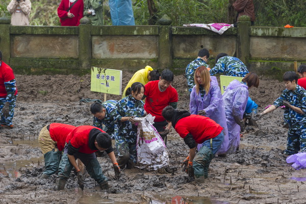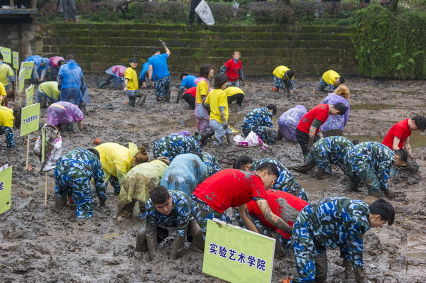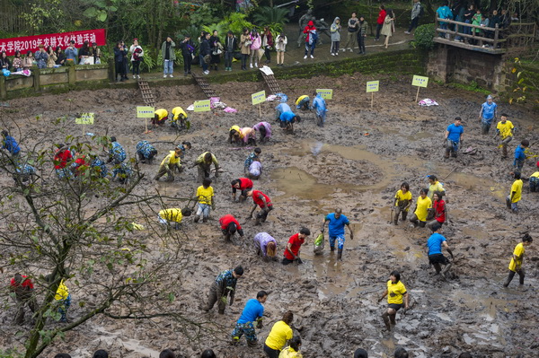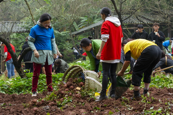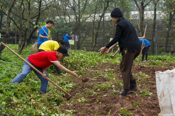在全校深入开展“不忘初心、牢记使命”主题教育之际,为引导全校师生辛勤劳动、诚实劳动、创造性劳动,唱响劳动最光荣、劳动最崇高、劳动最美丽的主旋律,厚植奋斗理念和劳动情怀,11月6日下午,我校2019年“向劳动致敬”—— 校园文化建设之农耕文化体验活动在虎溪校区荷塘和红薯地举行。