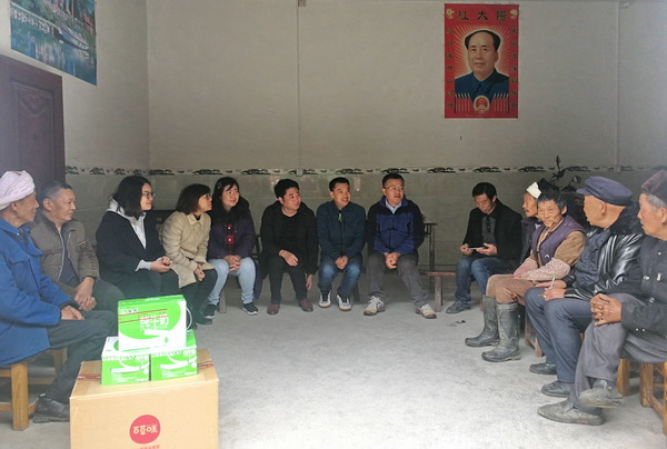 支部同志一行为学校对口扶贫的11户贫困家庭赠送了慰问品,并与贫困户代表现场座谈。重庆市教委驻天元乡扶贫工作队队长、我校党委副书记左益与贫困户亲切交谈,详细了解贫困户家庭情况、面临的困难以及大家对现目前扶贫工作的意见和建议,鼓励大家在党和国家的关怀下努力脱贫致富。贫困户们纷纷表示,国家开展精准扶贫工作以来,家庭经济得到了很大改善, 的结对帮扶,让他们感受到了很大的温暖。贫困户们对国家、对川美都表示了真诚的感谢。