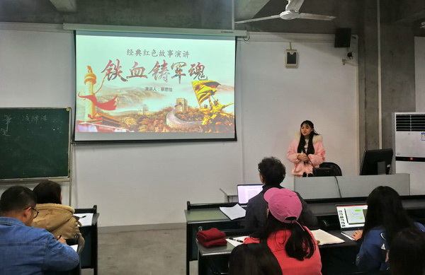 活动共有八名学生党员参与了比赛。王茜梓同学从艺术家詹建俊的油画作品《狼牙山五壮士》出发,讲述了狼牙山五壮士在战斗中临危不惧,英勇阻击,宁死不屈,义无反顾纵身跳下数十丈深的悬崖的英勇故事。王雪同学从刘国枢的油画作品《飞夺泸定桥》出发,讲述了中国工农红军长征中的这场著名战役、表现了中国工农红军顽强拼搏的精神。蔡思怡同学讲述了红军将领董振堂流尽最后一滴血战斗到底的故事。余佳芯同学讲述了雕塑《歌乐忠魂》的故事,告诉我们学习并继承红岩精神的重要意义。李新颖同学讲述了《人民英雄纪念碑》的浮雕作品,通过对8组浮雕作品的讲述,让各位党员重温中国近代史。王树芳同志通过国画《八女投江》这一作品,讲述了东北抗日联军第二路军第五军妇女团的八名女战士为掩护大部队突围转移任务,在弹尽援绝的情况下,一同跳下乌斯浑河的英勇故事。杨晶通过讲述茅盾文学《蚀》三部曲,带领党员从文学形象中体会一代革命先烈不断追求光明的坚韧与执着。陈佩玲同学通过重温江姐的故事,向各位党员再次宣传江姐精神,号召大家应该像江竹筠一样的共产党人学习,怀着对共产主义的崇高信仰,不向困难屈服。