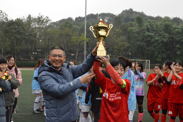 2019年 “荷马”杯女子足球赛于11月20日落下帷幕。本次比赛共有9支院队参赛,她们在这22天的时间里通过20场的激烈角逐,最终艺术人文学院在决赛中以1比0战胜造型艺术学院,捧得了冠军奖杯,造型艺术学院获得亚军,影视动画学院获得季军,设计学院获得第四名。通识学院院长杨茂森为获奖院队颁奖。