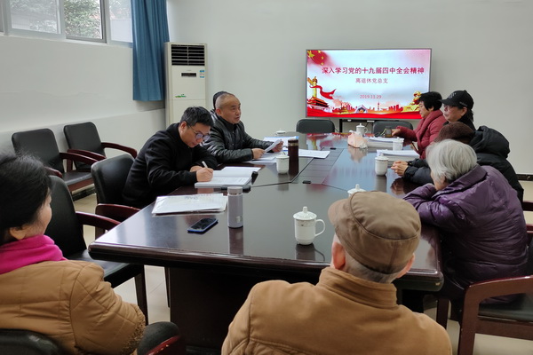 11月29日上午,离退休党总支在老同志活动中心召开总支支委扩大会,专题学习党的十九届四中全会精神。会议由党总支书记李勇成主持,党总支委员、各党支部书记和支部委员参加学习。