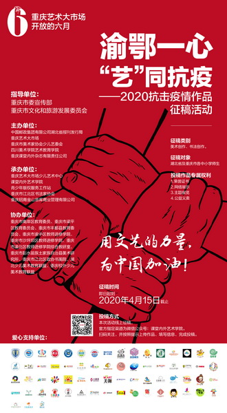 艺术教育学院还联合湖北省邮政报刊发行局、重庆艺术大市场、重庆美协少儿艺委会、课堂内外共同发起“渝鄂一心、‘艺’同抗疫”2020 抗击疫情作品征稿活动,此次征稿部分作品将由重庆艺术大市场少儿艺术中心授权进行公益义卖,交易所得金额将全额捐赠疫区乡村学校。