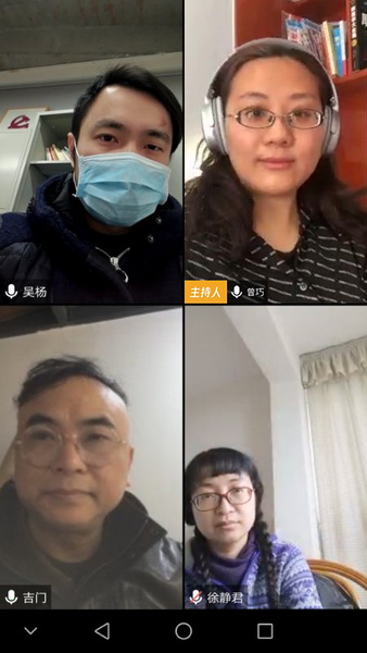 2月23日上午11点,影视动画学院党总支教工党支部运用腾讯会议APP召开在线组织生活会,支部全体党员同志在线,党支部书记曾巧主持。会议专题学习了学校川美委[2020]7号文件和近期重要指示。党总支书记周小波介绍了近期总支上下齐心协力,切实在疫情期间发挥了党员的模范作用,并提出党支部要切实把思想和行动统一到习近平总书记关于疫情防控工作的重要指示精神和党中央决策部署上来,继续认真贯彻落实学校上级的工作要求,全力抓好师生的疫情防控工作。党总支副书记吴杨对全体教工党员积极参加主题创作取得的丰硕成果给予肯定、表达鼓励,并对新学期教工党员“停课不停学”网上授课的重要工作做了周密部署。