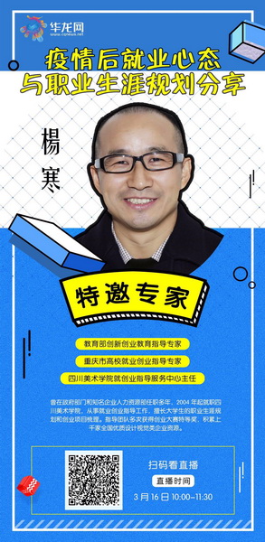 3月16日上午10点,我校学生处大学生就业创业指导服务中心主任杨寒受华龙网邀请,通过直播平台为全市大学毕业生做“疫情后就业心态与职业生涯规划”主题讲座。
