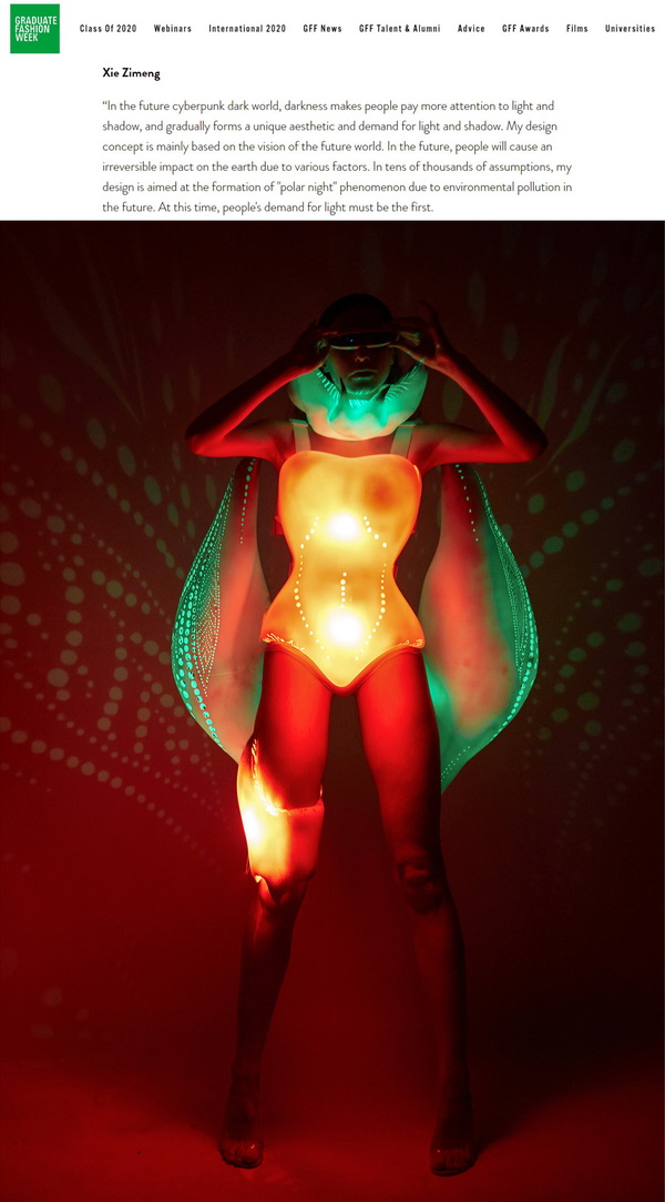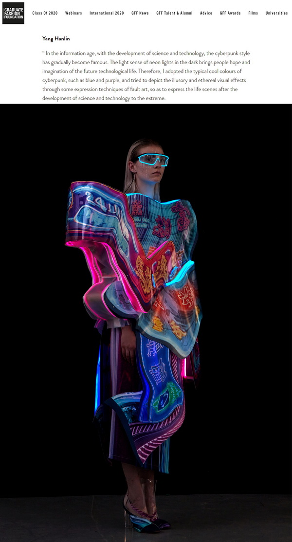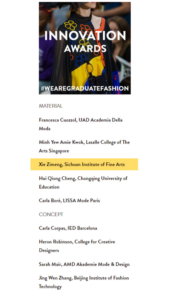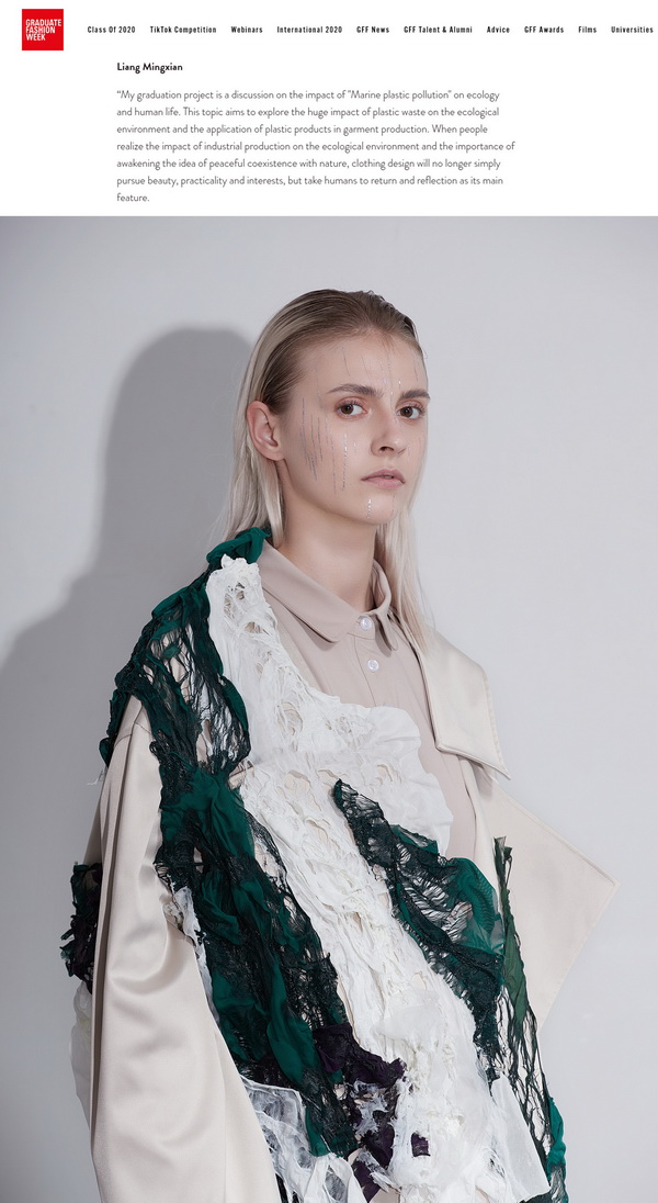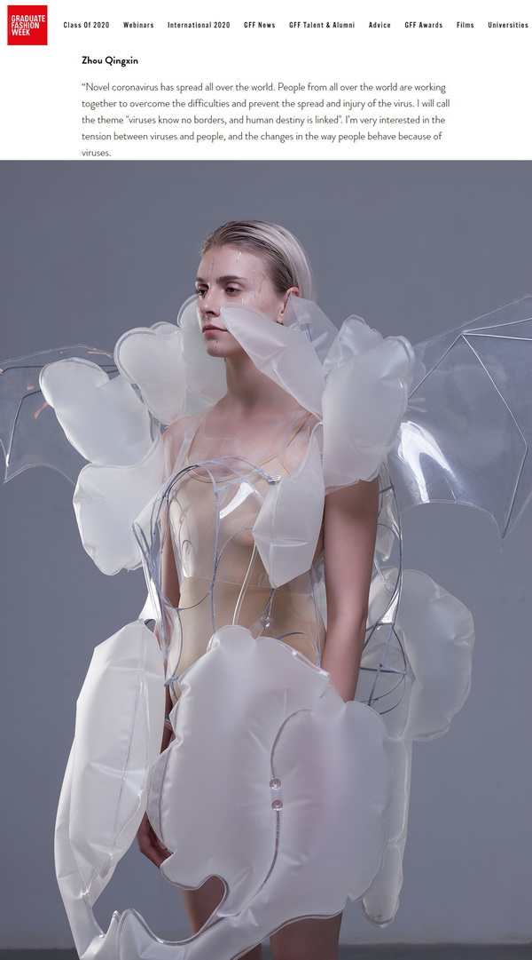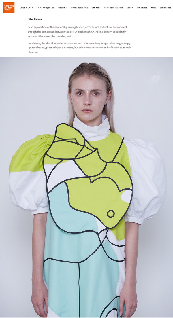 2020由于全球性新冠疫情的影响,伦敦国际大学生时装周将线下的国际秀场更改为在线的国际院校展,近日,伦敦国际大学生时装周官方网站对我校进行了专项报道,介绍了10件今年我校的毕设作品。我校从51位毕业学生中选送了4位学生的作品参加时装周上3个奖项的角逐,近日从伦敦发来好消息,三件作品最终荣获官方评选大奖。