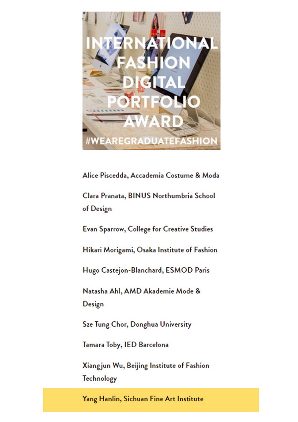 杨涵麟荣获“International Fashion Digital Portfolio Award”