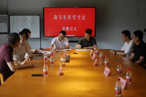 7月9日,“荷马美育奖学金”捐赠仪式在艺术教育学院举行。参加捐赠仪式的有: 副校长焦兴涛,艾艺荷马教育科技股份有限公司董事长何玉凯一行5人,艺术教育学院领导班子等。仪式由艺术教育学院副院长郭昕主持。