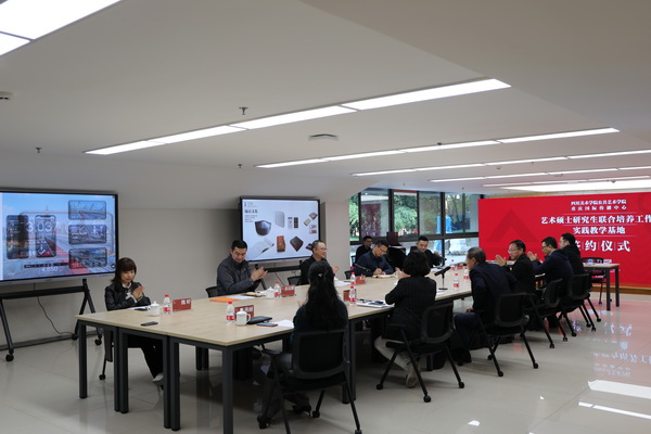 10月22日,公共艺术学院与重庆国际文化传播中心研究生工作站签约仪式及实践教学基地授牌仪式在黄桷坪校区四会议室举行。重庆市文化和旅游发展委员会副主任秦定波,重庆国际传播中心主任赵吾君, 党委常委、纪委书记黄云,重庆市文化与旅游发展委员会国际处处长陈燕丽,重庆市九龙坡区文旅委书记邓立,重庆国际传播中心运营部经理吴德川,重庆国际传播中心运营部主管蒋岸君,公共艺术学院党政班子成员及部分师生代表参加了仪式。公共艺术学院副院长谭璜主持了签约仪式。