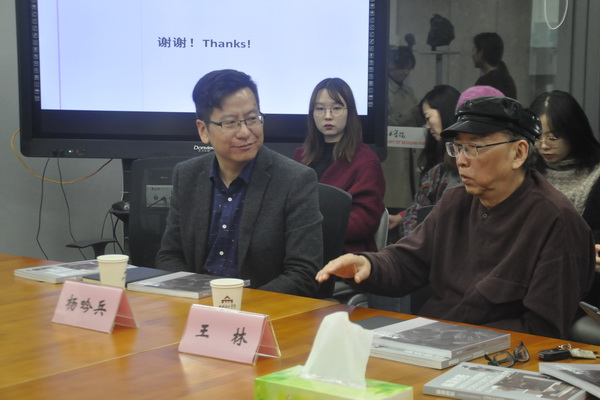 开幕式之后,朱尚熹作品分享会在图书馆研讨室举行。王林、申晓南、曾岳、彭汉钦、谢彬、李占洋、杨吟兵作为嘉宾参加了分享会。