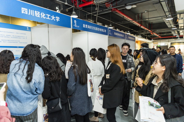 推荐会后,举行了双选会。自贡、荣县政府部门及四川轻化工大学、自贡海天文化股份有限公司等30多家单位到场招聘,我校及重庆有关高校的毕业生到场应聘。