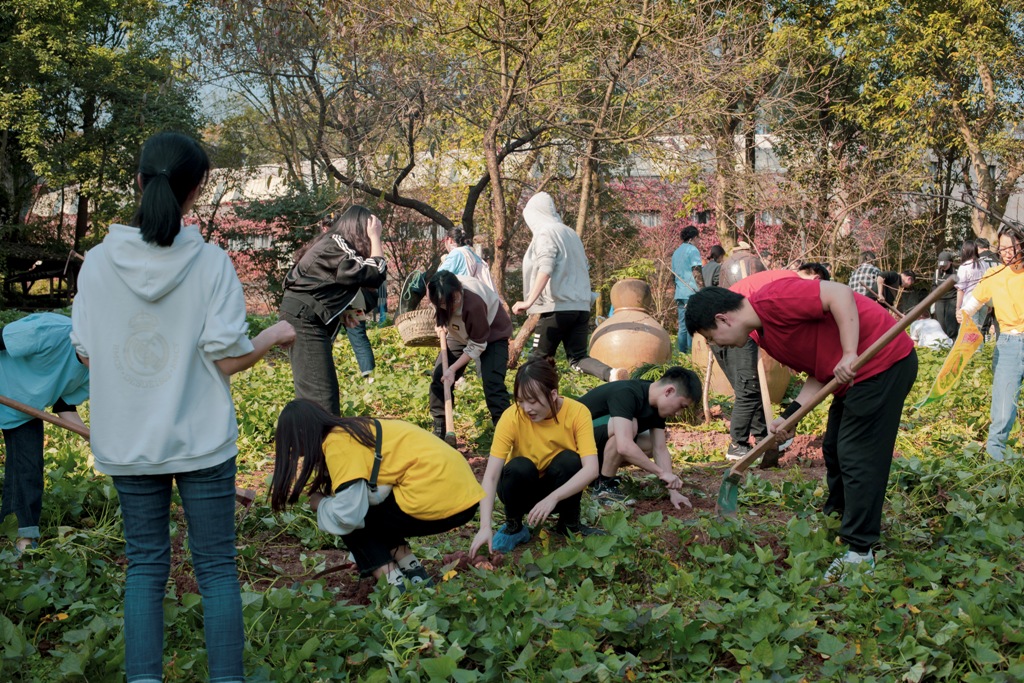 活动共有来自全校各院系和机关党委等10个部门工会组成的16个队伍踊跃参与。劳作现场气氛热烈,大家割红薯藤、挖红薯、采莲藕、洗淤泥,忙活得不亦乐乎,学生们更是在藕塘里打起了泥巴仗,现场一片欢腾。大家一起体验农耕与收获,感受丰收的喜悦,体会劳动的艰辛与劳动的光荣。