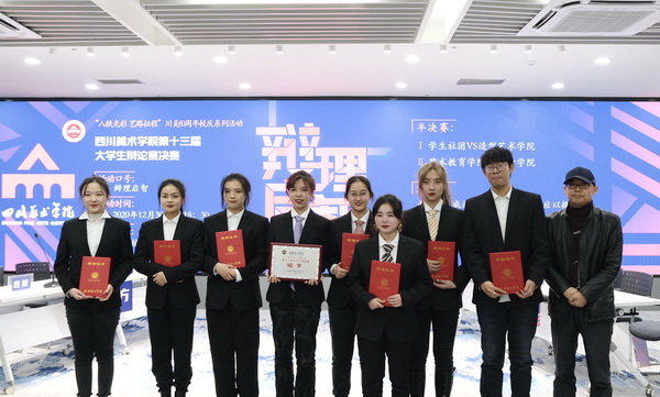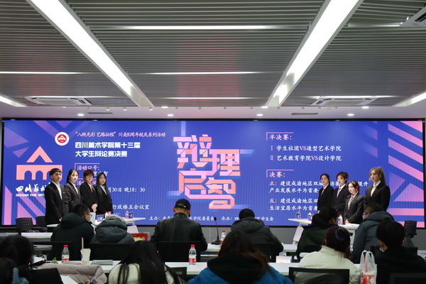 12月30日晚上,由共青团 委员会主办, 学生会承办的“八秩光彩 艺路征程”川美八十周年校庆系列活动——学校第十三届大学生辩论赛决赛,在虎溪校区第五会议室热烈举行。决赛由基建后勤处处长夏新强、审计处副处长杨清和、马克思主义学院吴晓春教授、通识学院田源副教授、校团委书记吴倩担任辩论赛决赛评委。校团委全体工作人员,相关学院团总支书记、辅导员老师、各参赛队指导老师,各学院同学代表参加了活动。