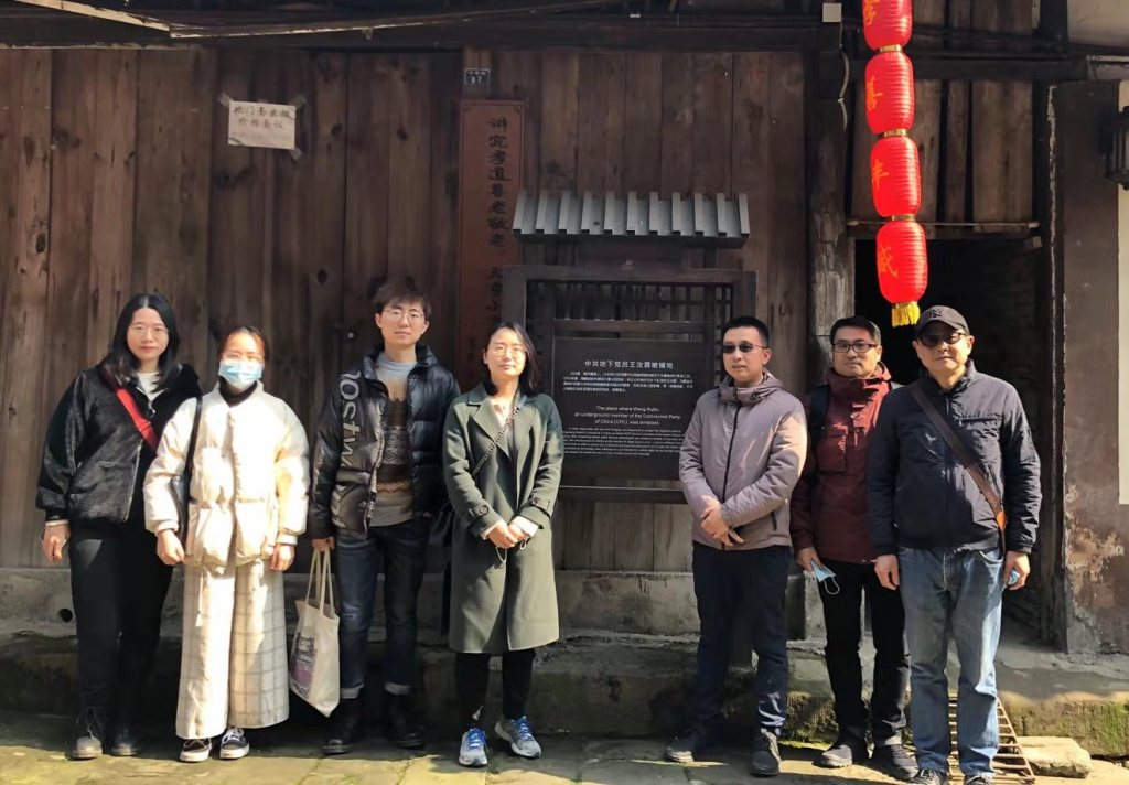 同时,教师支部结合党史学习,组织全体党员与部分学生党员(包括预备党员和入党积极分子)到古镇“中共地下党员王汝霖被捕处”开展了“不忘初心、投身乡村建设”主题党日活动。此次活动是建环学院党总支教师党支部响应国家乡村振兴战略的一次具体实践,也是"双带头人"教师党支部书记工作室“思政进课堂”将“党建融入课堂、课堂搬进现场”的一次积极探索。