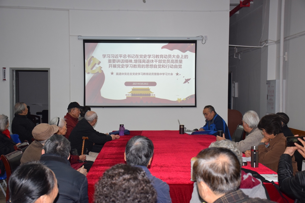 关于开展党史学习教育的实施方案》,3月26日上午,离退休党总支在黄桷坪校区老同志活动中心开展主题党日活动,对离退休干部党员的党史学习教育进行了安排,同时开展党史学习教育集中学习。离退休工作处党员干部、离退休干部党员、党总支和党支部委员共60余人参加会议。党总支书记李勇成主持会议。