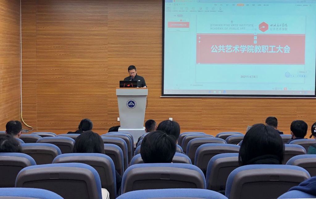 4月8日下午,公共艺术学院在黄桷坪校区学术报告厅召开全院教职工会议,贯彻落实党史学习教育及教育改革评价精神。公共艺术学院班子成员及全体教职工参加会议。会议由学院党总支书记雍朝永主持。