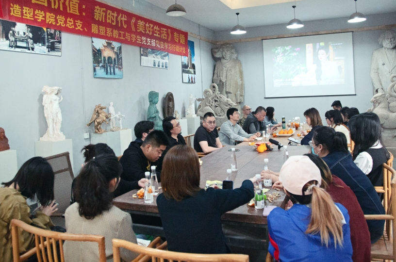 参观结束后,大家在雕塑工厂会议室进行了党史学习教育座谈会。座谈会由造型艺术学院雕塑系教工支部书记曾令香同志主持。曾令香首先阐述了从党史教育到全面小康的关系,到我们在中国语境之下如何做出一份文明答卷等问题。随后与会的每位教师党员,群众代表及学生党员主动分享自己的创作思考,畅谈自己对党的认识。本次学习活动形式新颖、内容丰富、角度多样,有力推进了党史学习教育走心、走实、走深。
