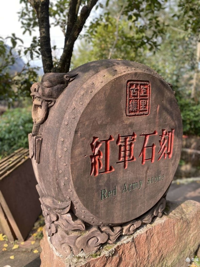 1935年6月至1936年2月,徐向前带领的红四方面军在上里古镇驻扎了半年,成立名为"认真、德诚、紫光、崇安"等四个代号的政治部,发展了七百多名热血青年参加工农红军,随红军北上的近5000余人。在石牌、石桥、石碑、石坊、石壁、石柱上面刻下众多抗日标语和革命口号,标语内容有“要救中国,要不当亡国奴,就要武装起来抗日反蒋去!”“中国快要亡国了!只有抗日反蒋,才能自救救国”等等。七十余幅红军石刻保存完好,至今仍清晰可见。