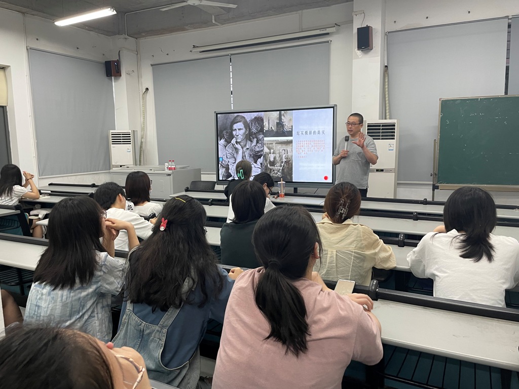 7月7日晚,影视动画学院在YA102教室举办了纪实与新闻摄影讲座,由学校党委宣传部杨金良老师主讲。影视动画学院学生干部、暑期“三下乡”实践活动队队员以及对纪实与新闻摄影感兴趣的师生50余人到场聆听了讲座。