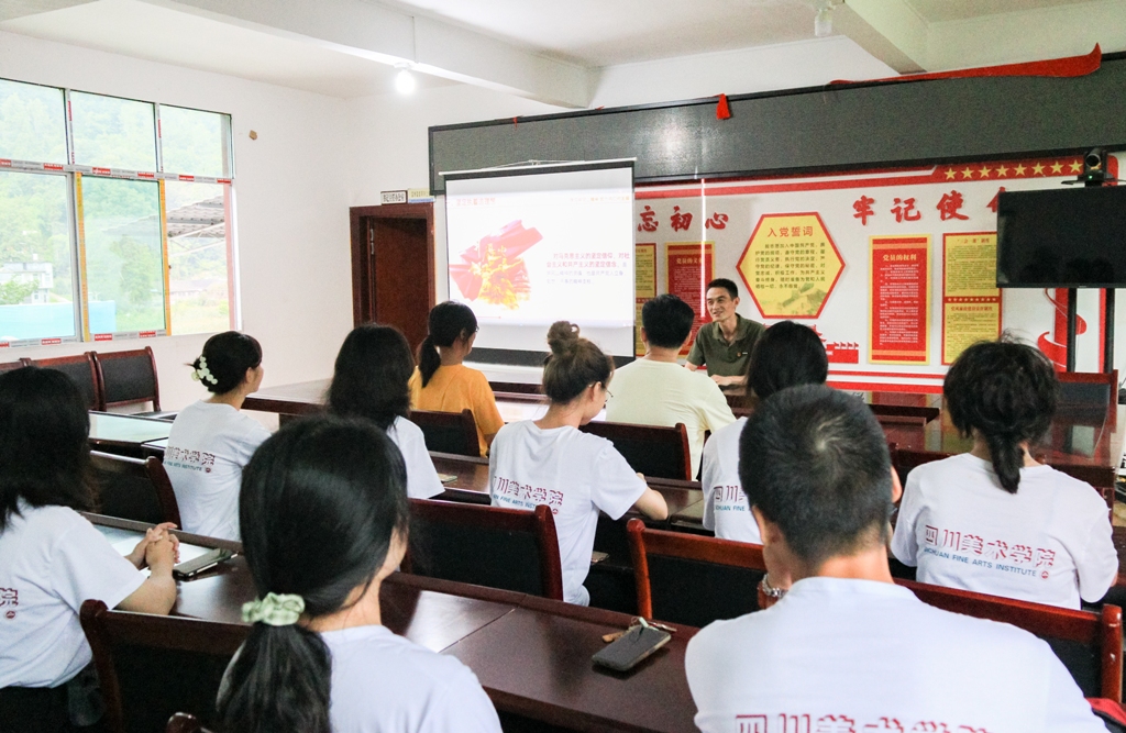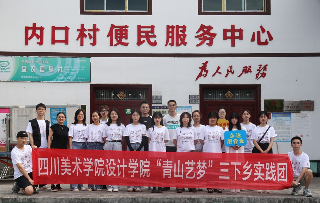 习近平总书记在庆祝中国共产党成立100周年大会上向中国青年寄予希望:“中国青年要以实现中华民族伟大复兴为己任,增强做中国人的志气、骨气、底气,不负时代,不负韶华,不负党和人民的殷切期望!”为深学笃用习近平新时代中国特色社会主义思想及习近平总书记对青年一代的期望,落实好上级关于开展2021年大中专学生志愿者暑期文化科技卫生“三下乡”社会实践活动的精神,引导学生以实际行动参与乡村振兴伟大事业,在社会实践中受教育、长才干、作贡献, 设计学院党总支组建暑期“三下乡”乡村振兴实践团——“青山艺梦”团,走进重庆市酉阳县两罾乡内口村开展暑期实践活动。