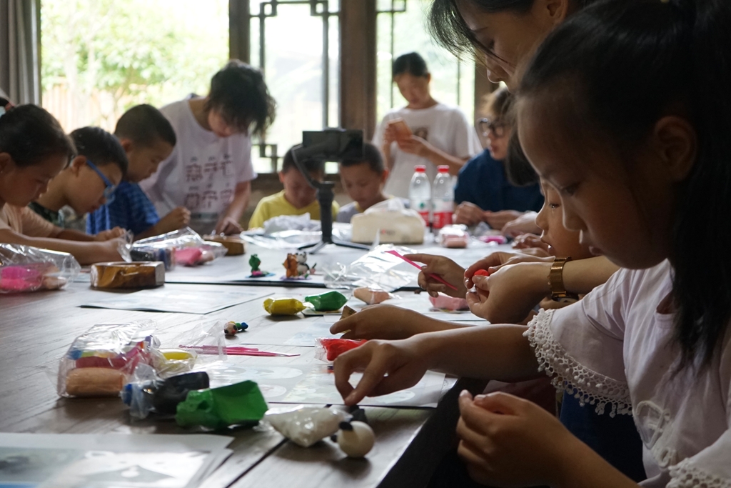 本次艺术教育兴趣班教授了手工制作和简笔绘画。开班第一天,实践团队开展了超轻黏土手工制作课堂。课堂以“我身边的动物”为主题,孩子们结合自己的所思、所想、所学,充分发挥想象力和创造力,制作出恐龙、乌龟、毛毛虫、小鸭子、小白兔、大象等,并创作出一个个“动物乐园”。