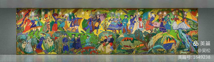 2、机场站《多彩贵州欢迎您》马赛克镶嵌壁画,壁画规格:21.15.X5.4米