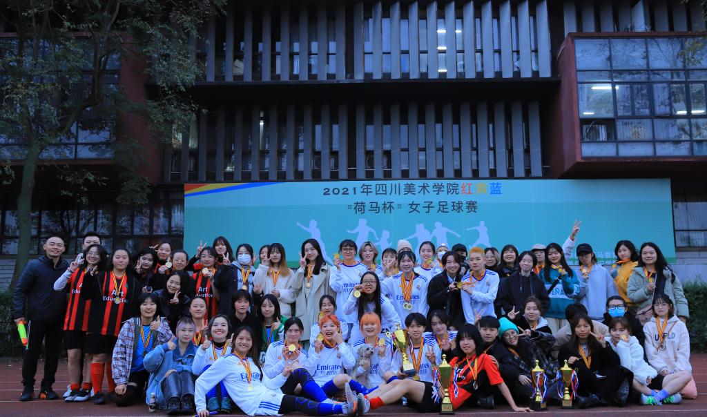 11月10日下午4点30分, 红黄蓝"荷马杯"女子足球赛决赛在学校运动场准时开赛。在经过激烈角逐后,造型艺术学院以2比0击败艺术教育学院,夺得2021年 红黄蓝"荷马杯"女子足球赛冠军。