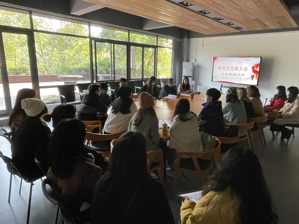 11月10日, 艺术教育学院第一次研究生代表大会在综合楼艺术教育学院会议室召开。艺术教育学院辅导员,研究生主席成员候选人闫卓、逯嘉嘉、高萌、李翊,以及艺术教育学院全体研究生参会。