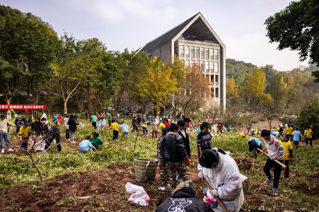 11月13日下午,校工会在虎溪校区荷塘和红薯地举办了“向劳动致敬” 校园文化建设系列活动之农耕文化体验活动。