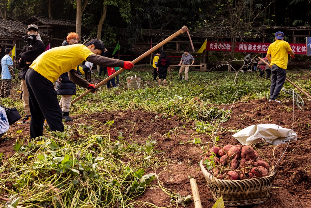 农耕文化体验活动是我校师生中呼声最高、印象最深、最具川美特色的文体活动之一。活动以师生共同采莲藕、挖红薯的方式,让广大师生了解农业生产劳动的过程,体验劳动的乐趣,激发创作的灵感。
