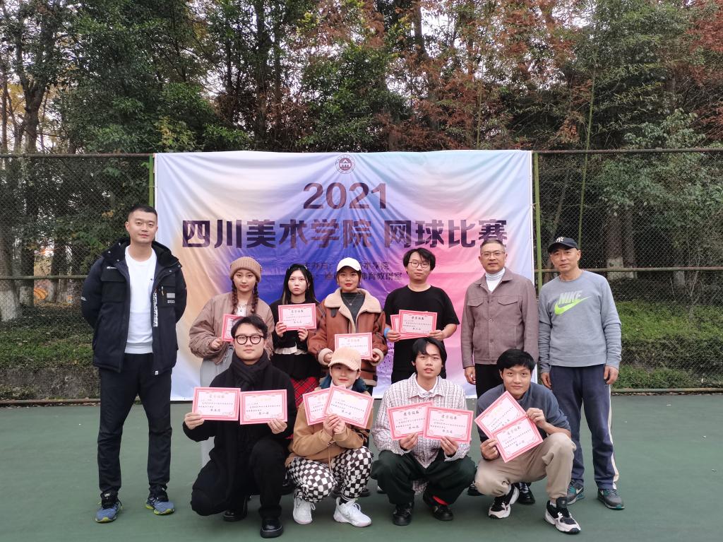 2021年 大学生网球比赛从11月20日开赛,因天气原因,到12月1日才结束。比赛项目设有男子单打、女子单打和混合双打,比赛采用单循环制,在周末和平时课余时间进行比赛。经过多轮紧张、激烈的角逐,最后造型艺术学院廖登海获得男子单打第一名,影视动画学院陈力奇获得了第二名,艺术人文学院江思楠获得了第三名;中国画与书法艺术学院王芃元获得女子单打第一名,艺术人文学院邹言获得第二名,设计学院钟汶希获得第三名;设计学院王坤和中国画与书法艺术学院王芃元获得混合双打第一名,艺术人文学院江思楠和魏薇获得第二名,造型艺术学院廖登海和设计学院钟汶希获得第三名。
