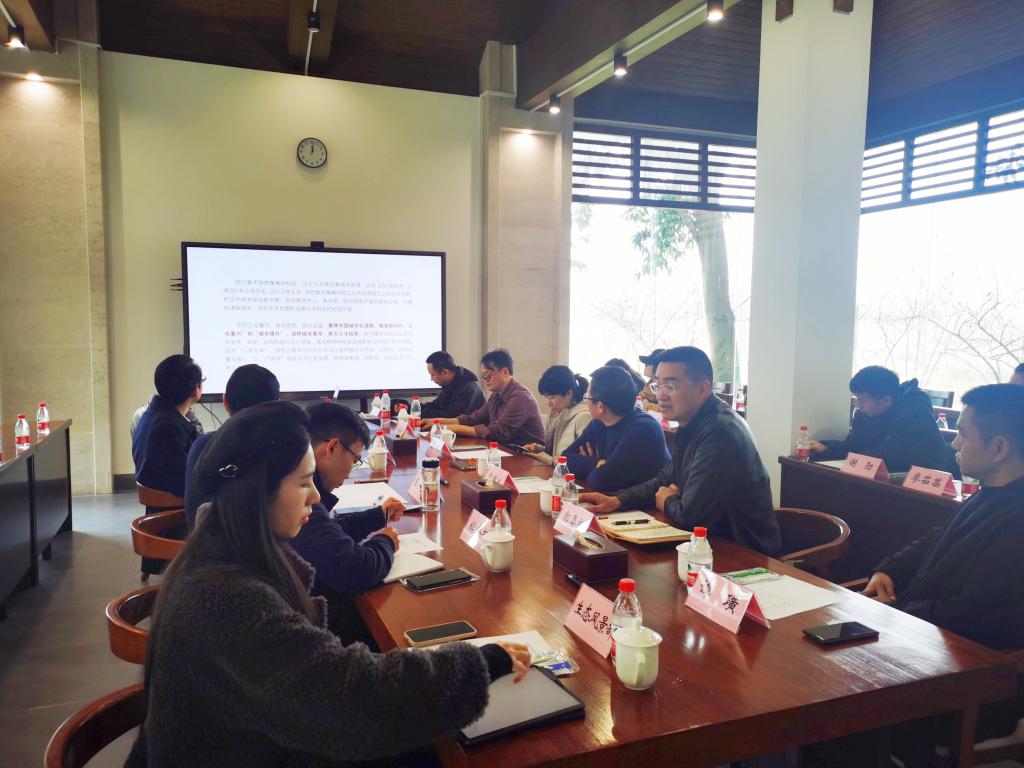 现场调研结束后,公共艺术学院与广阳岛绿色发展公司进行座谈,深入交流学习。公共艺术学院院长郭晏麟介绍了学院基本情况:公共艺术学院围绕“两地、两高”目标,突出学科专业一体化特色,以“城市美学+艺术塑造+空间设计”为核心,创新实验与实践的教学方法,服务国家战略,用“艺术+生态”“艺术+科技”“文化+创意”服务城市建设,增强城乡审美韵味和文化品位,把美术成果更好服务于人民群众的高品质生活需求。此次与广阳岛绿色发展公司希望从实践教学、在地创作、空间营造等方面进行多方面合作,更好地推动教育教学、人才培养与服务地方经济社会发展的融合。党总支书记雍朝永指出,公共艺术学院的学科专业一体化建设与广阳岛的生态建设能够找到很多共同的切入点,班子非常重视与广阳岛的合作,接下来将进一步深化合作细节,希望对公共艺术学院的教育教学和毕业生就业起到促进作用。副院长魏婷、谭璜分别从教学建设、学科建设和科研创作的角度,提出了合作思路。与会同志结合自身专业纷纷谈想法、提建议,会场气氛热烈。