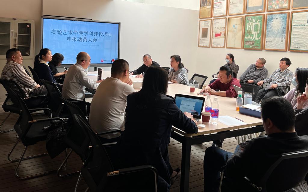 3 ⽉ 10 ⽇下午,实验艺术学院在学院会议室举办了 2022 年美术学学科建设工作宣讲会。研究生处处长韦芳、实验艺术学院党政领导及全体教职工参加会议。