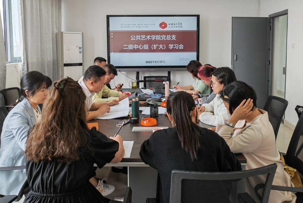 5月17日上午10点,公共艺术学院党总支在黄桷坪校区综合楼1405会议室召开二级中心组(扩大)学习会,深入学习了习近平总书记在庆祝中国共产主义青年团成立100周年大会上的重要讲话和考察中国人民大学时的重要讲话精神。学院党总支书记雍朝永主持学习会,学院党政领导班子、党总支委员、党支部书记、辅导员、团总支副书记参会。