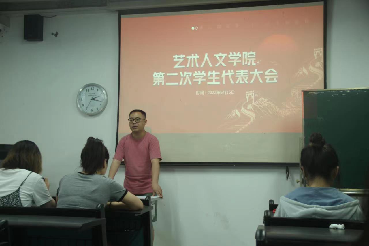 6月15日下午,艺术人文学院第二次学生代表大会在 设计楼C栋205教室召开。学院各个年级各班团支部选举产生的36名学生代表和学生会成员参会。大会由艺术人文学院团总支书记陈勃主持。