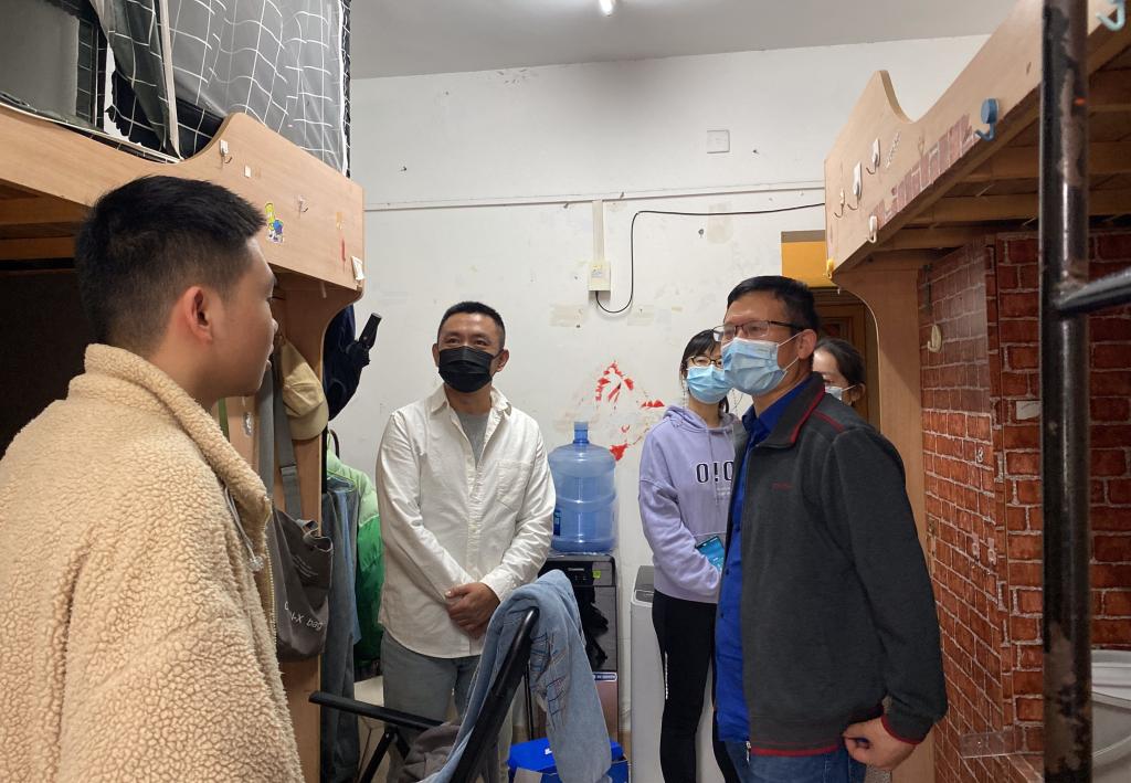 走访过程中,学院领导向同学们详细询问了解了线上教学的效果,同学们日常生活中的困难以及对防疫工作的看法,向同学们传达了学校疫情防控政策要求,叮嘱同学们每天要按时打卡,及时完成核酸检测,如有身体不适,一定要及时上报,将学校疫情防控政策落到实处。对此,同学们表示非常理解和支持学校的防疫工作,认为学校是最安全的地方。学院党总支书记雍朝永表示,希望同学们保持积极向上的心态,认真学习,合理作息,加强体育锻炼,提高身体素质,充实地度过疫情防控期间的校园文化生活。