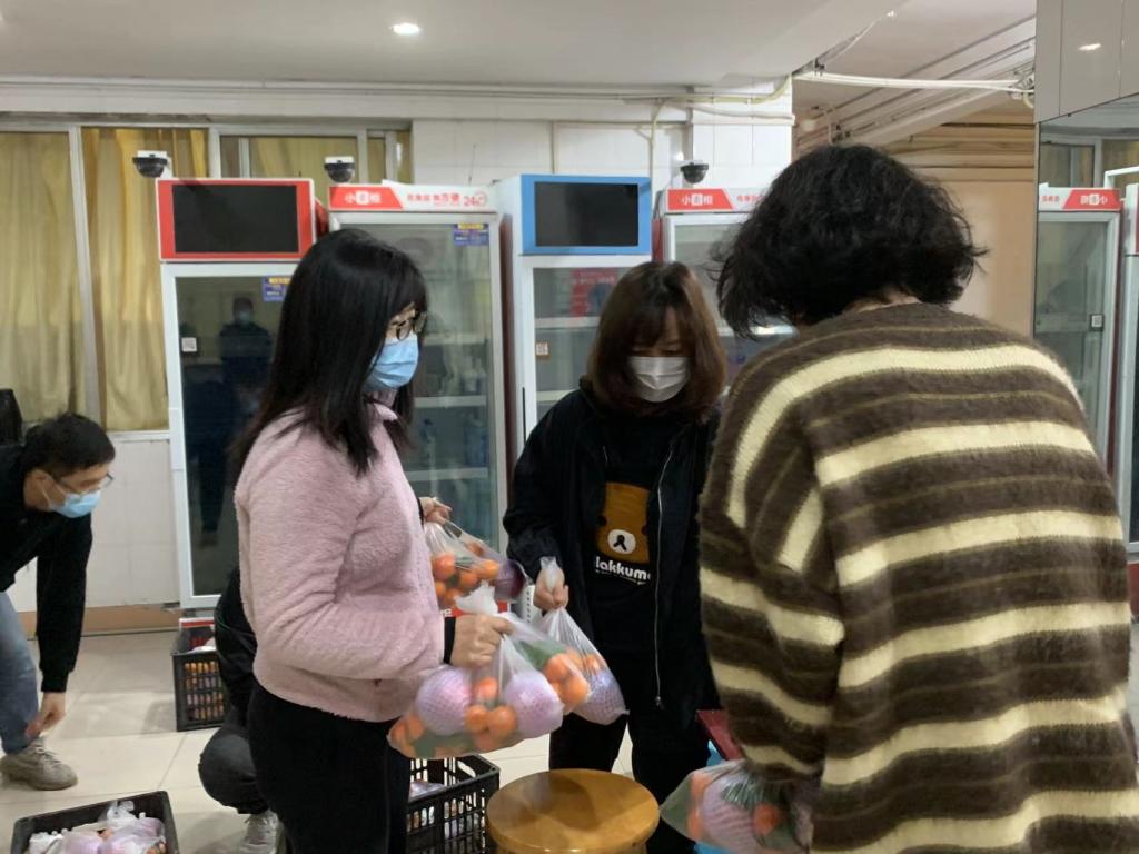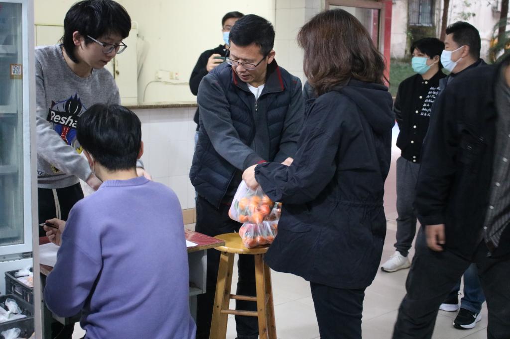 “听说同学们想吃水果了,学校给大家安排了,请大家以寝室为单位,戴好口罩,派代表下来排队领取哦!”11月13日下午,学院党政领导、辅导员、防疫应急小组教师、学生志愿者在宿舍楼下为同学们分发时令水果,同学们纷纷表示被学校暖到了。