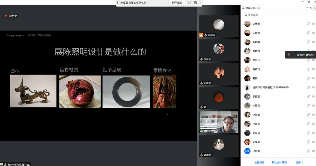 “中华优秀传统文化的创造性发展与创新性转化”,是贯穿“义务教育艺术课程标准”美术学科4个学段的主题。教学内容分布在“欣赏-评述”“造型-表现”“设计-应用”“综合-探索”四大领域,并单列“体验、学做、传承、发展”文化遗产的四个阶段学习任务。围绕“传统双创”主题,11月3日至20日,王天祥教授主持开展“赓续与传承-传统活化系列工作坊”,系列工作坊包括非遗美育、国画雅集单元。在持续10余个讲座的基础上,学生们进入创作实践阶段。工坊主讲陈航教授分别于11月8日、11月16日在线上为学生们进行了深入细致的指导。11月15日至17日,赵建华副教授主持“光影叙事——博物馆灯光设计赏析”,对博物馆展陈设计中一个至关重要的要素-光影及其叙事方法与策略进行了讨论。11月27、28日,“全美育”学术季第一场大型学术活动“设计美育论坛”开启,本期论坛主题为“博物馆:对接、转换与构建”。12月9日,聚焦以世界文化遗产大足石刻为中心的第二届“丝路遗产数字活化科技艺术展”以线上展演方式开展,将为大家奉献近100组(件)聚焦传统文化活化的数字艺术作品。