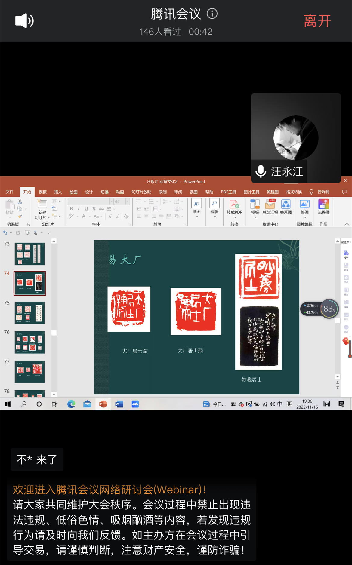 2020级书法1班的虞佳乐同学表示:“昨天的讲座让我受益匪浅,汪老师深入浅出地为我们讲解了学书取法的途径、方法和创作理念,为我们剖析了各个朝代的印章特色,让我明白了今后该如何正确地择帖和配帖。”