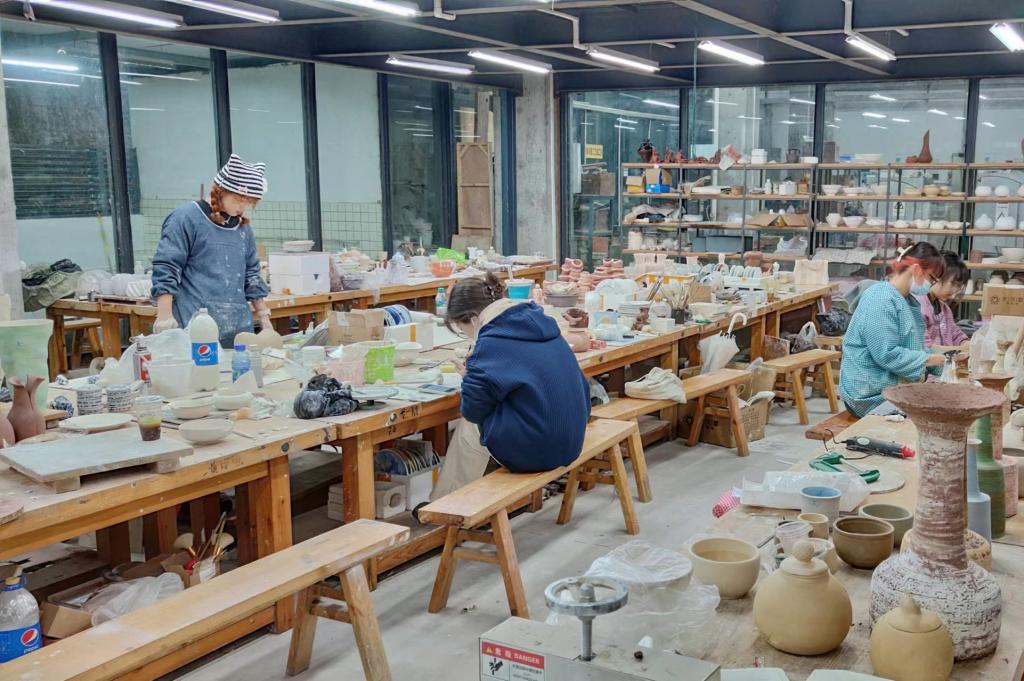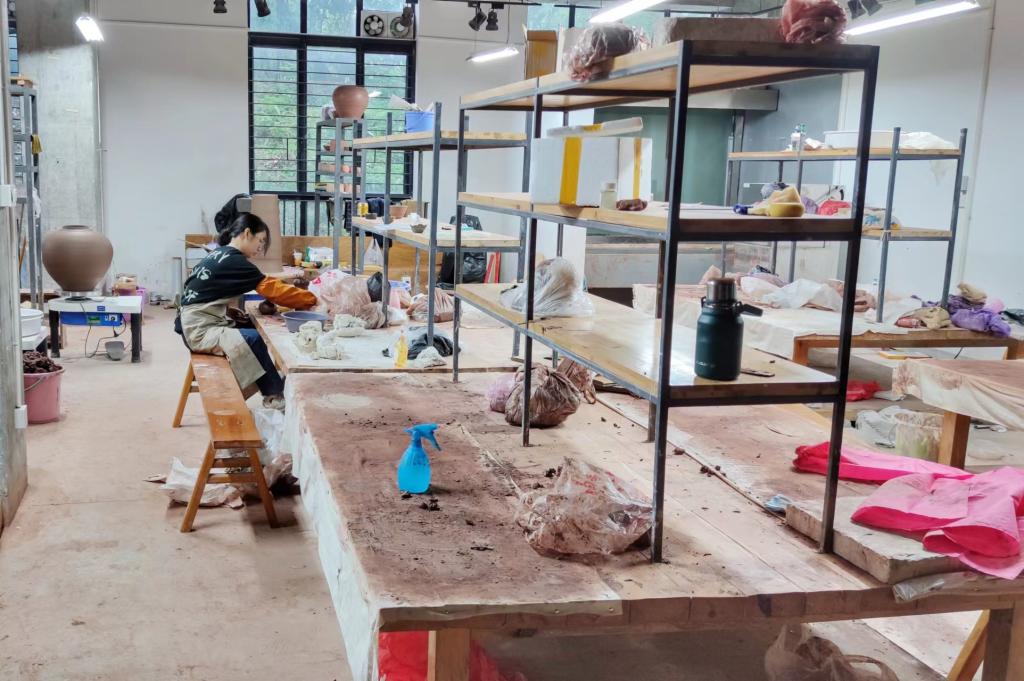 精工实验室里,教辅人员操作激光切割设备,为建筑与环境艺术学院学生切割材料,辅助制作建筑模型,完成《模型设计与制作》课程作业;陶瓷实验室、玻璃实验室里,教辅人员为设计学院学生操作设备、烧制作品,协助完成《陶瓷造型》《陶瓷设计》《铸造玻璃》等课程;版画实验室里,各版种实验室均按时开放,造型艺术学院版画系学生在实验室里进行作品创作;在硬质材料实验室,造型艺术学院雕塑系《陶瓷器物雕塑》已做好课程衔接,学生能进入实验室进行课后制作;虚拟演播厅里,实验教学中心积极配合宣传部、研究生院,为即将开始的《川美讲堂》第二季线上讲座活动清理室内空间、检查安全设施、保障灯光设备。
