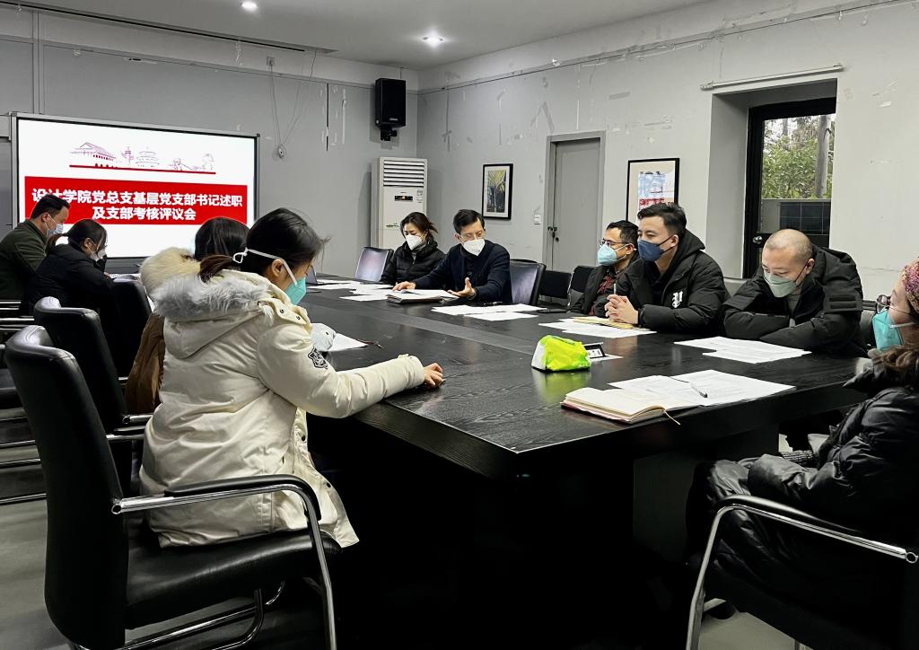 2022年12月28日下午,设计学院党总支召开基层党支部书记述职及支部考核评议会,学院党总支委员会委员、各党支部书记参会。会议由设计学院党总支书记陈勇主持。