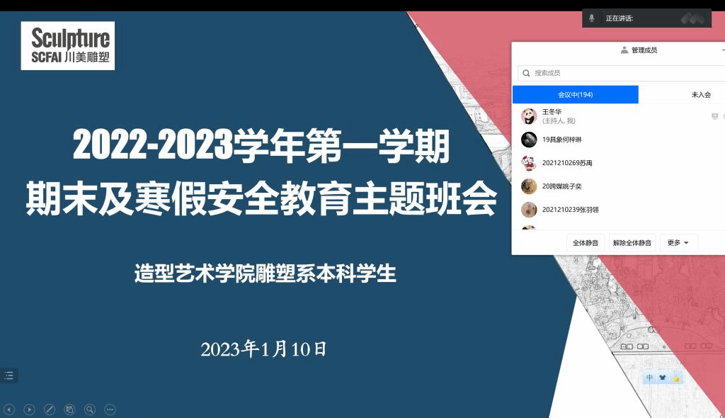 临近寒假,为进一步贯彻落实学校川美办〔2023〕2 号文件精神和要求,确保寒假期间学院教学区域和办公区域的消防安全稳定,营造防灾减灾宣传氛围,唤起广大师生对防灾减灾工作的高度关注,切实加强学院消防安全管理和火灾防范工作,同时为学生在寒假期间普及推广安全教育知识,强化安全意识。造型艺术学院结合工作实际,于2023年1月10日、11日开展了消防安全大检查及安全知识教育系列活动,并制定了针对性、可操作性强的实施方案。