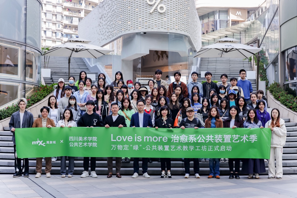 4月10日上午10点, 公共艺术学院万象定“绿”——公共装置艺术教学工坊在重庆万象城正式启动。万象城总经理王明阳,公共艺术学院副院长魏婷、城市形象设计教研室主任李靖及工作坊师生们参加本次开幕式。