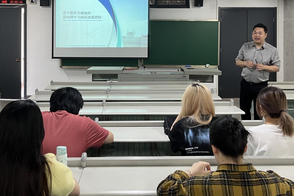 田力以“基于胜任力视角的简历撰写与面试备战逻辑”为题,首先向同学们介绍了当前的就业形势,指出一份优秀的求职简历对于同学们找工作是十分重要的;其次从胜任力模型、简历撰写的内容和技巧、面试基础、结构化面试和无领导小组讨论面试五个方面,进行了详细阐述。他表示,同学们要结合自己的目标,提前做好求职面试准备,争取早日实现就业。