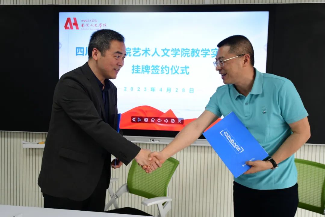 座谈后,艺术人文学院分别与成都美术馆、成都画廊协会举办了教学实践实习基地挂牌签约仪式,此次仪式象征着艺术人文学院与成都画廊协会和成都画院进一步友好合作,共谋发展。