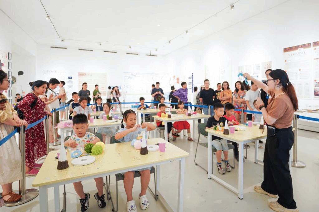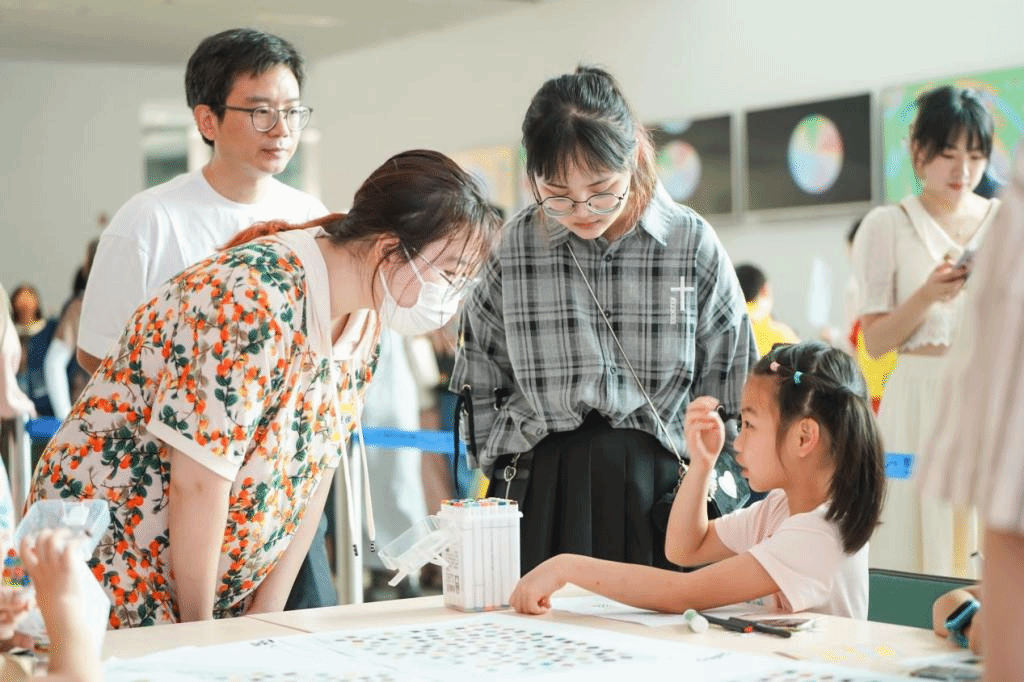 会前,为让嘉宾们更好地了解学院整体情况和专业特色,学院党总支书记刘建峰和各系主任带领嘉宾们参观了艺术教育学院举办的美育公教活动。