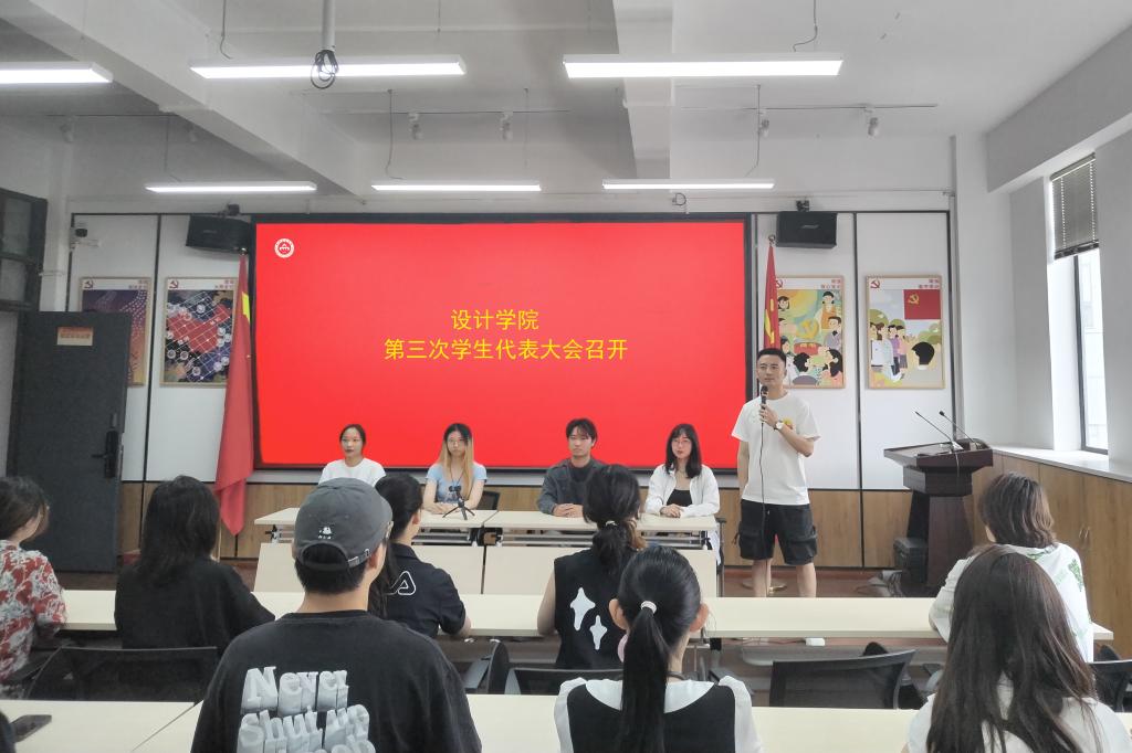 6月14日, 设计学院在SG402召开第三次学生代表大会。设计学院党总支书记陈勇、团总支书记顾柯、辅导员、32名本科学生代表和学生会成员参加会议。会议由院学生会组织部部长池云祈主持。
