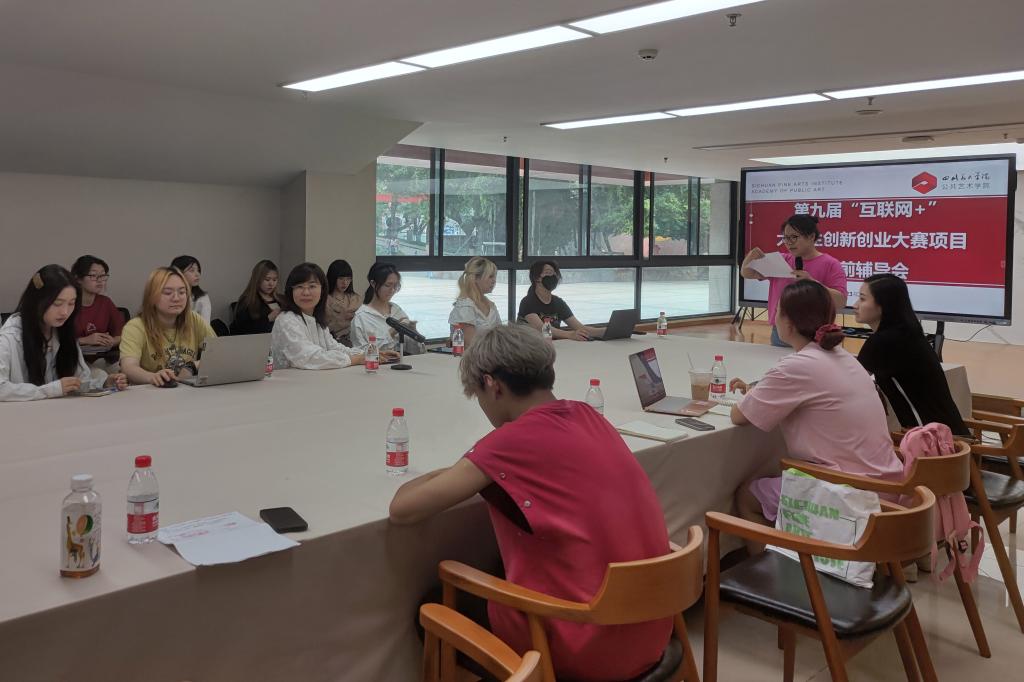 6月19日下午,公共艺术学院邀请曲率创工场创始人、“互联网+”大学生创新创业大赛评委廖栩来黄桷坪校区为学院创新创业大赛项目做赛前辅导和问诊。学院副院长魏婷和十余个项目主要负责人到场参会。