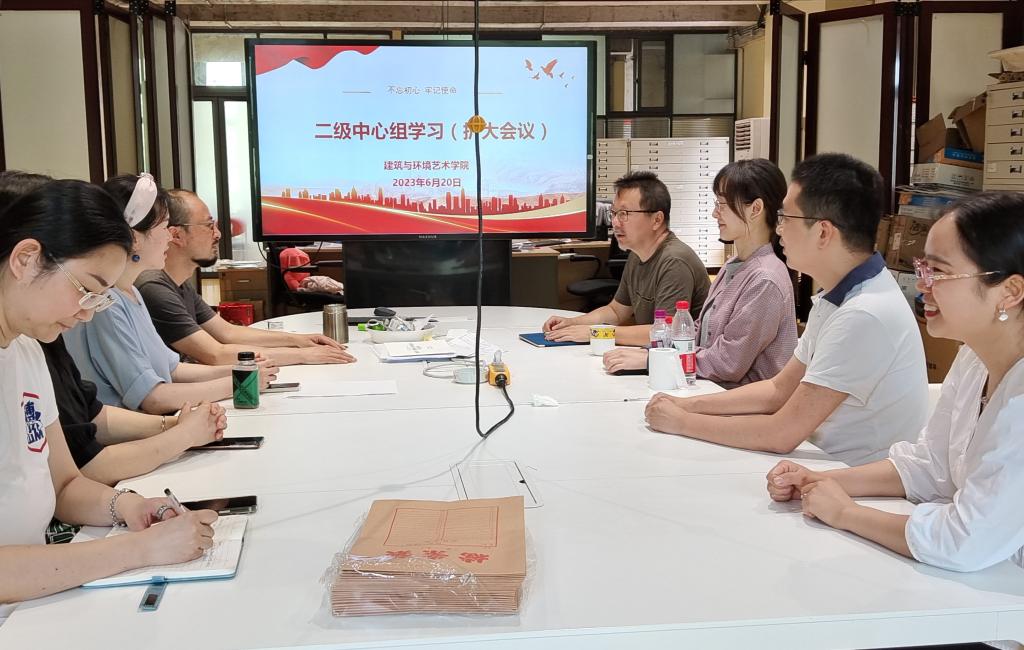 为了深入推进学习习近平新时代中国特色社会主义思想主题教育走深走实,6月20日上午,建筑与环境艺术学院召开二级中心组(扩大)学习,学院党总支副书记郭辉、院长黄耘、副院长黄红春分别作领学发言,总支委员、全体行政人员、辅导员参加会议,会议由郭辉主持。