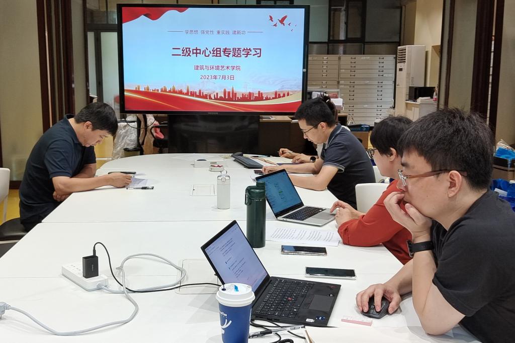 为了深入推进学习习近平新时代中国特色社会主义思想主题教育走深走实,7月3日下午,建筑与环境艺术学院召开二级中心组专题学习,学院党总支副书记郭辉、院长黄耘(线上)、副院长黄红春分别作领学发言,总支委员、各支部书记参加会议,主题教育工作组成员王世臣等列席会议。会议由郭辉主持。
