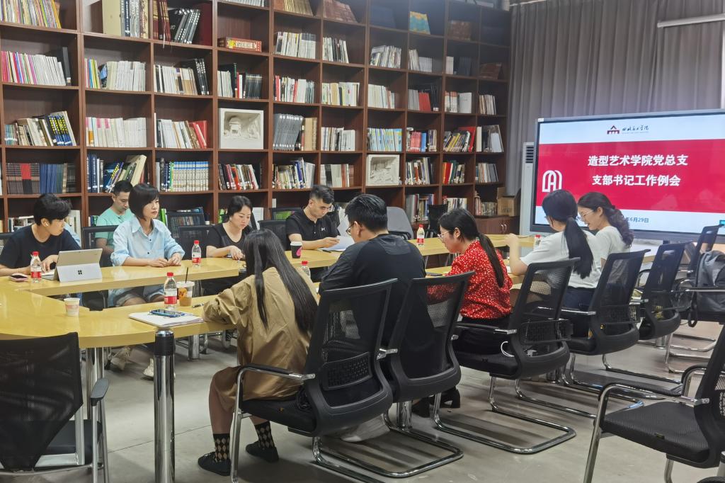 6月29日下午14:30,造型艺术学院党总支在雕塑系会议室召开了党支部书记工作例会。党总支委员、支部书记及各党支部支委参加会议。会议由学院党总支书记韦芳主持。